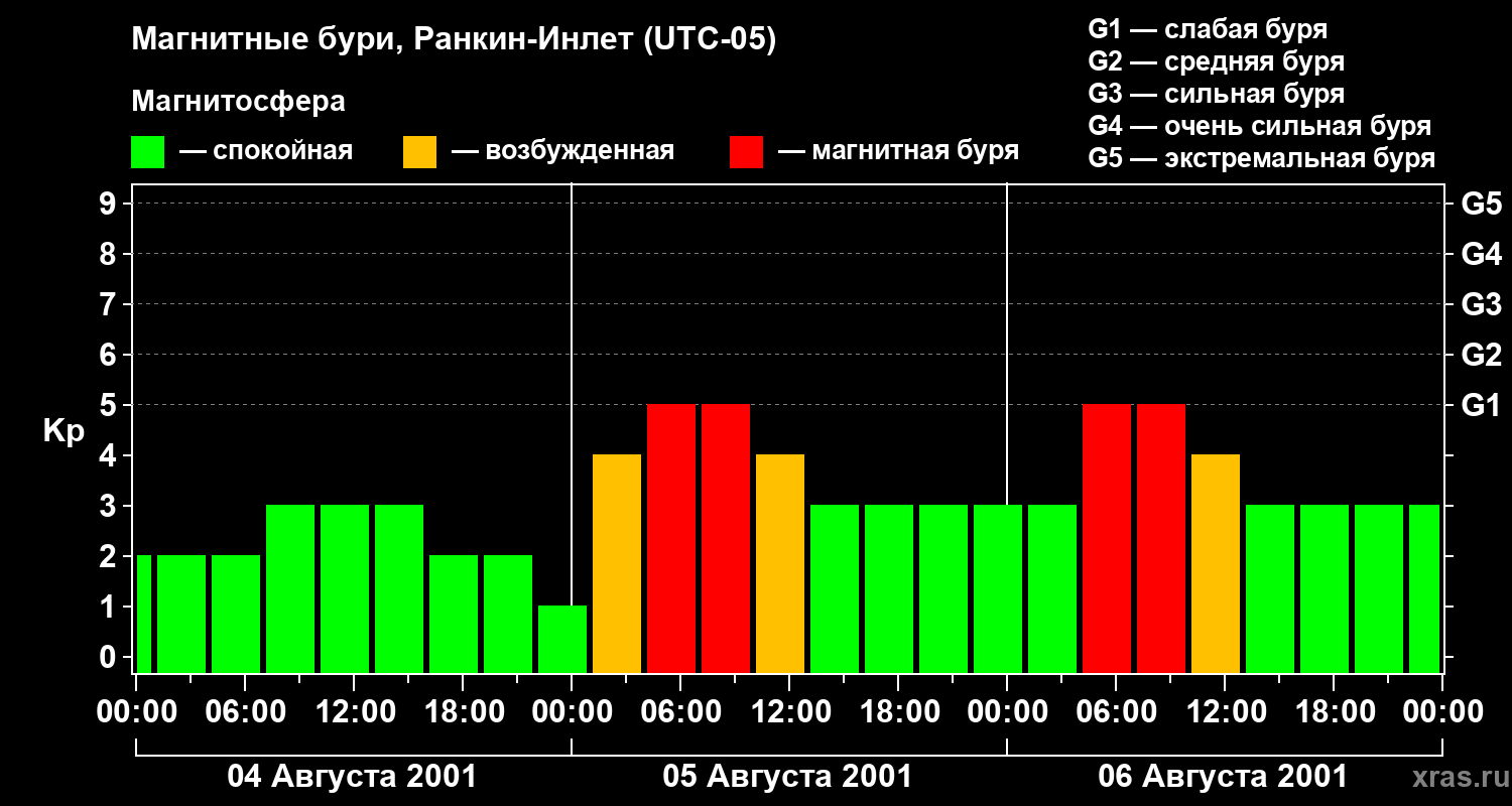 Магнитные бури в Ранкин-Инлете 6 августа 2001 года