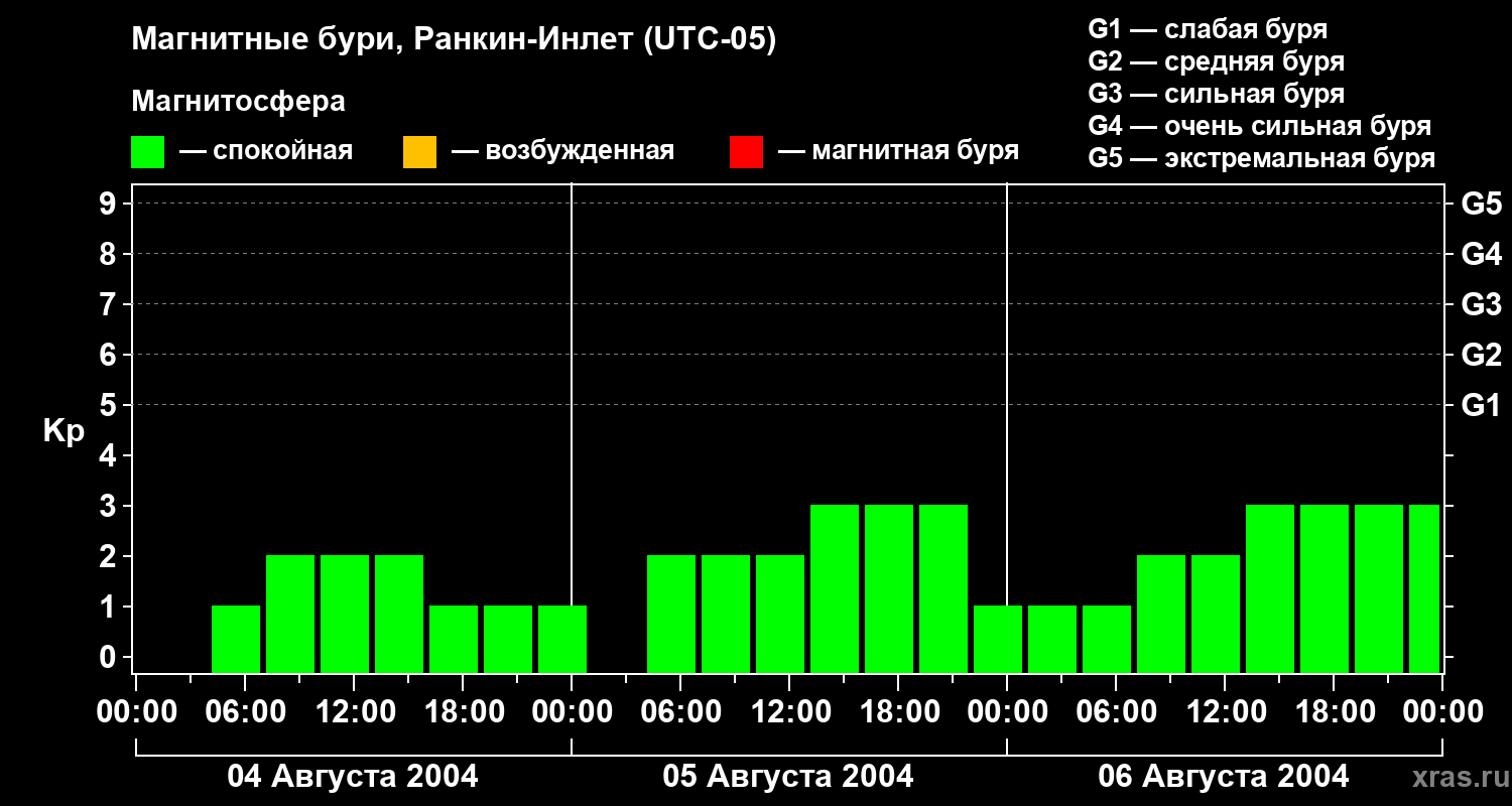 Магнитные бури в Ранкин-Инлете в августе 2004 года