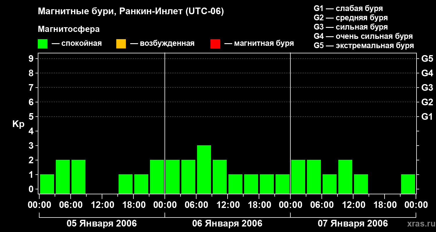 Магнитные бури в Ранкин-Инлете в январе 2006 года