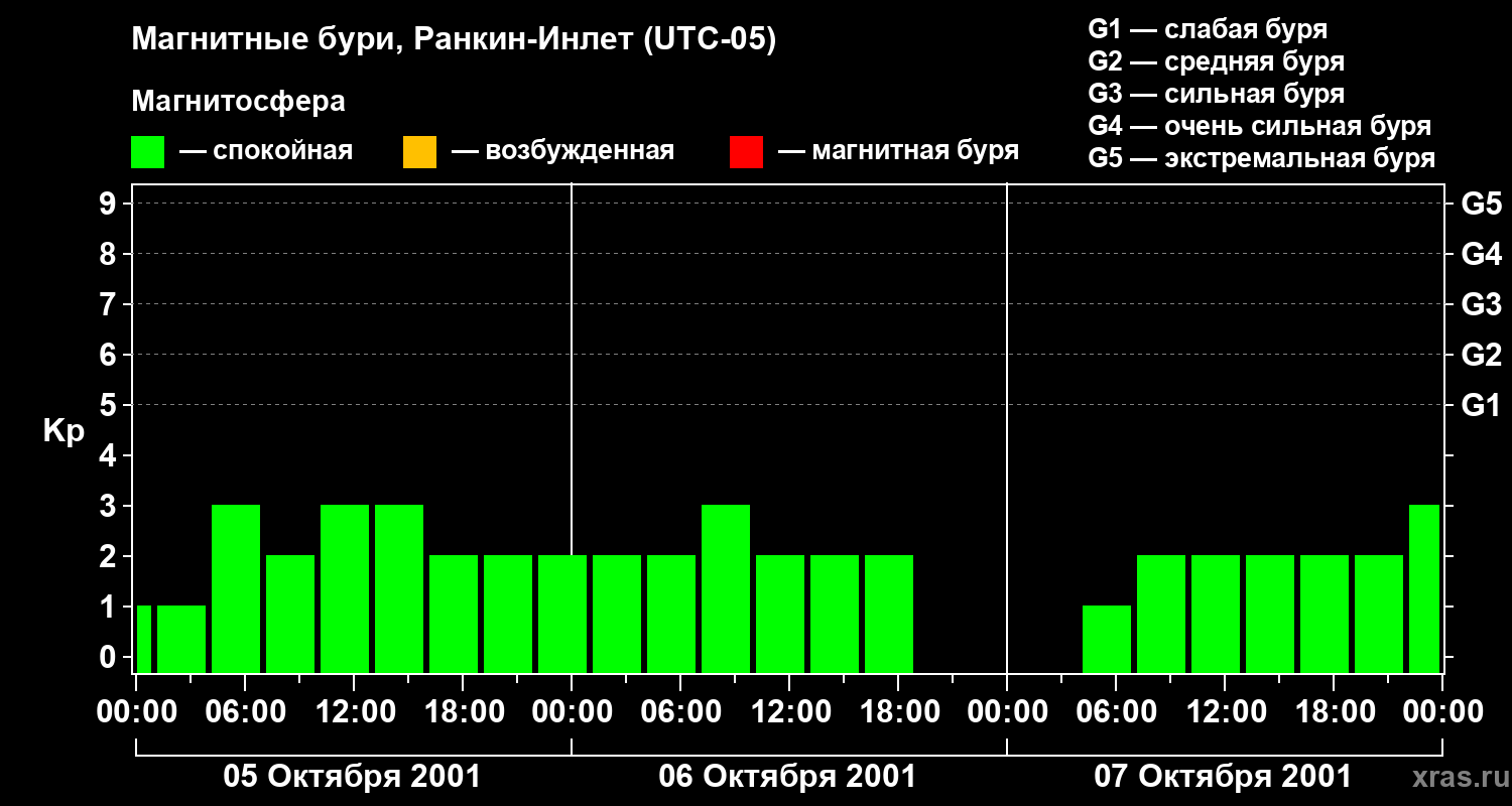 Магнитные бури в Ранкин-Инлете 7 октября 2001 года