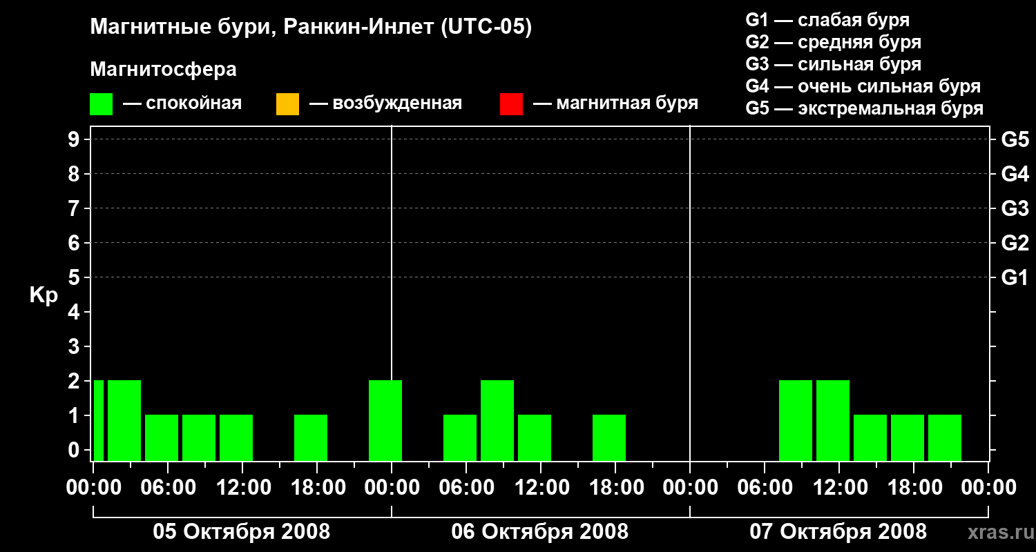 Магнитные бури в Ранкин-Инлете в октябре 2008 года