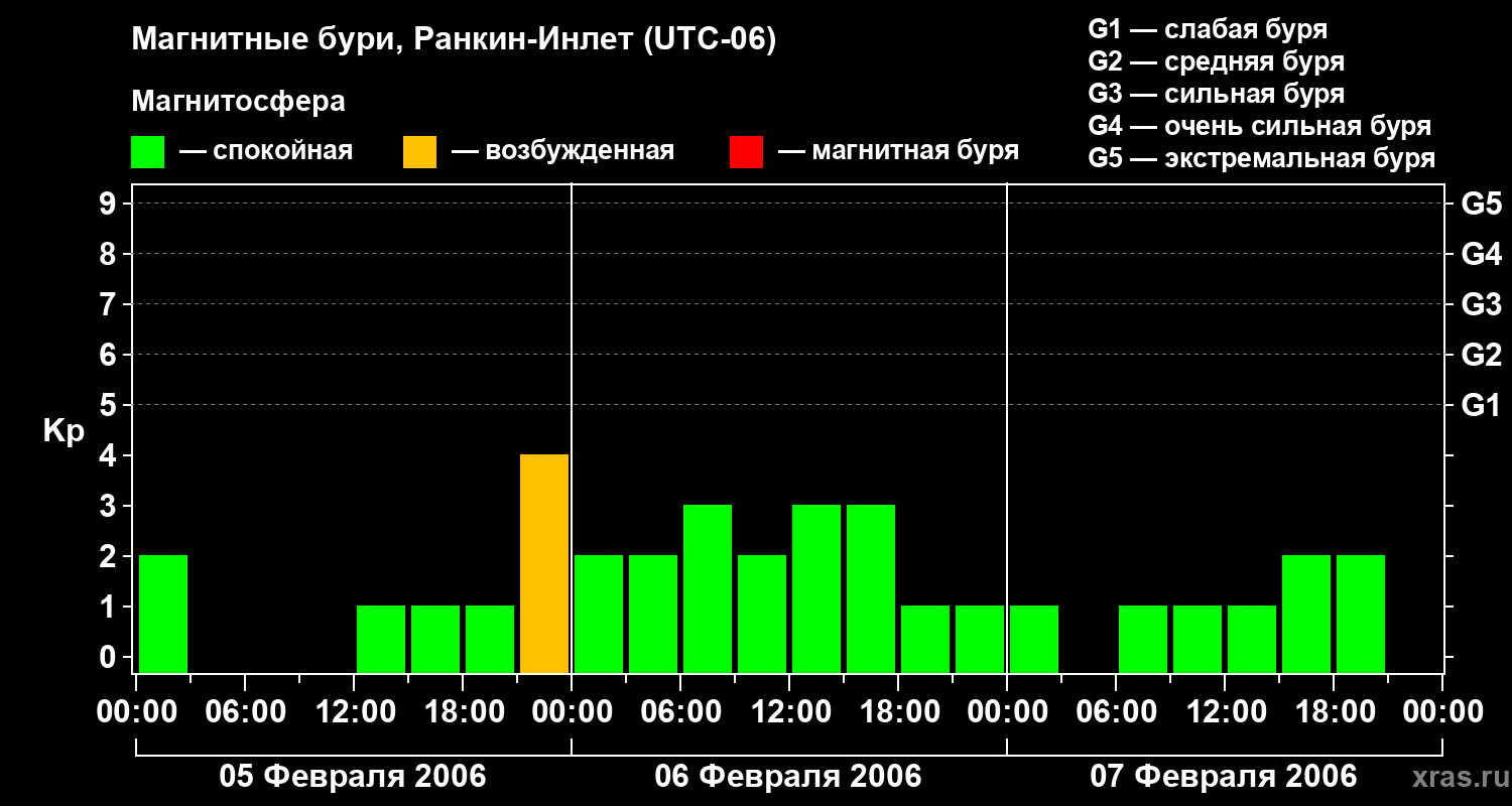 Магнитные бури в Ранкин-Инлете в феврале 2006 года