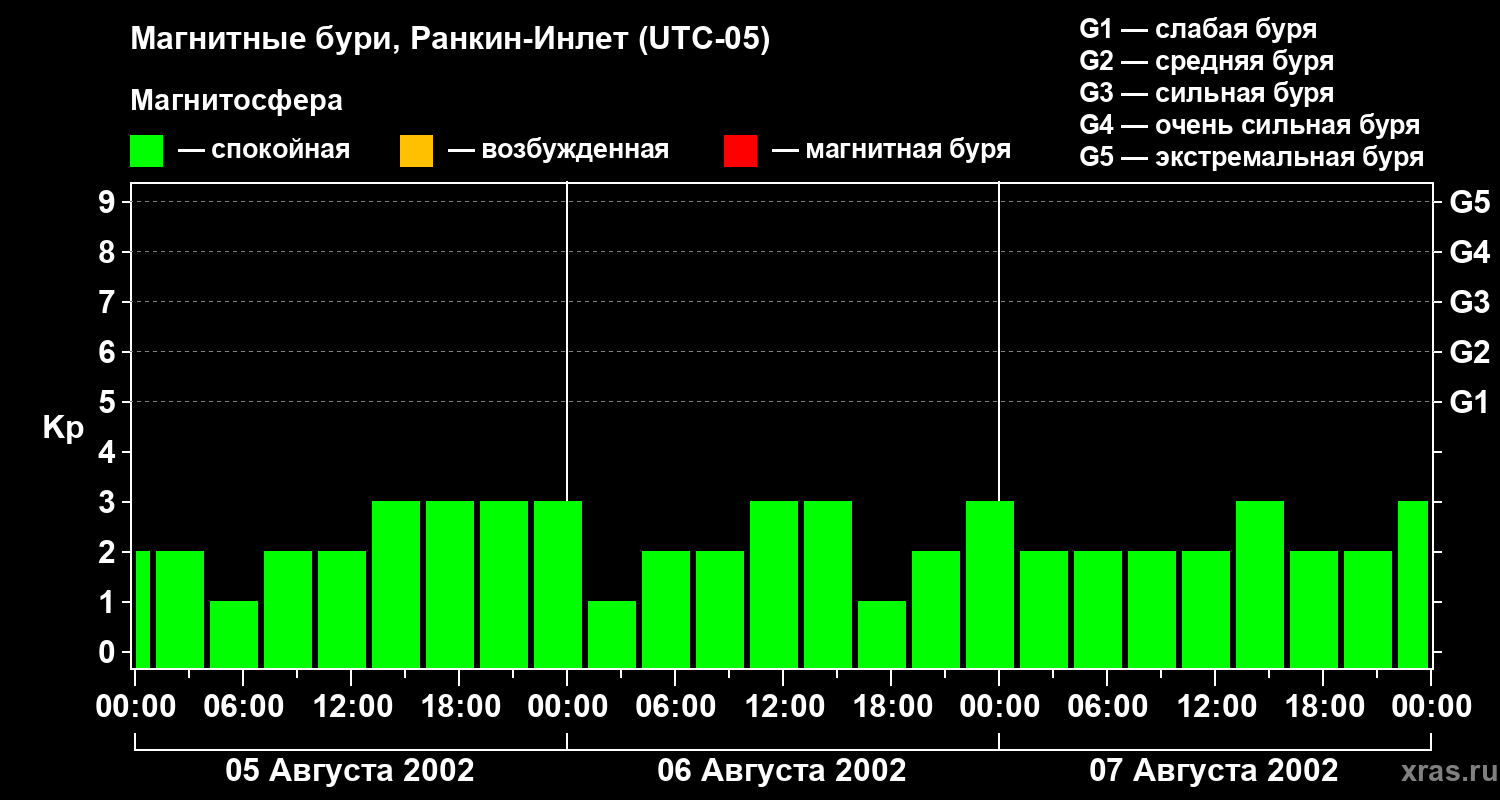 Магнитные бури в Ранкин-Инлете в августе 2002 года