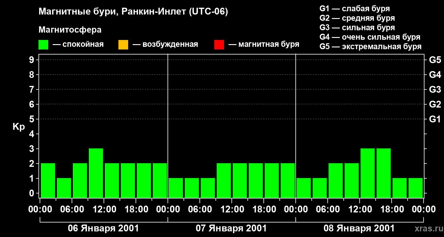 Магнитные бури в Ранкин-Инлете 8 января 2001 года