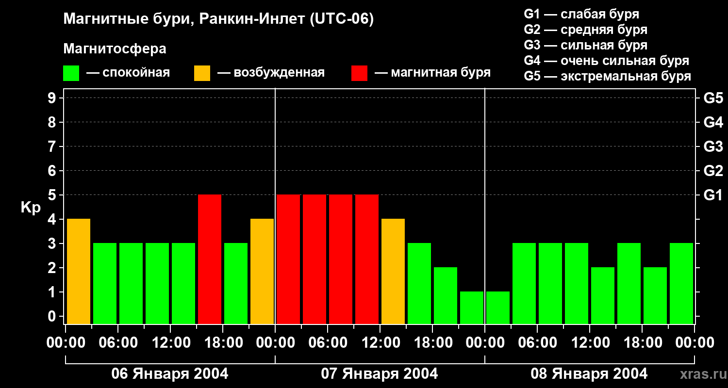 Магнитные бури в Ранкин-Инлете 8 января 2004 года