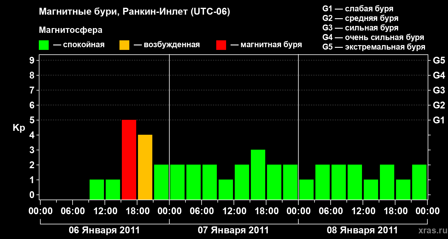 Магнитные бури в Ранкин-Инлете 8 января 2011 года