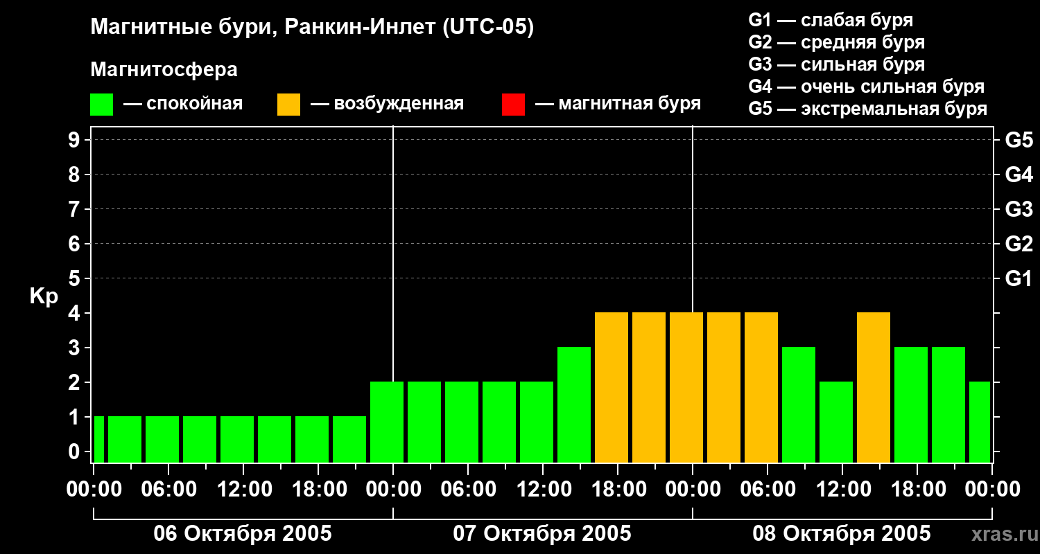 Магнитные бури в Ранкин-Инлете в октябре 2005 года