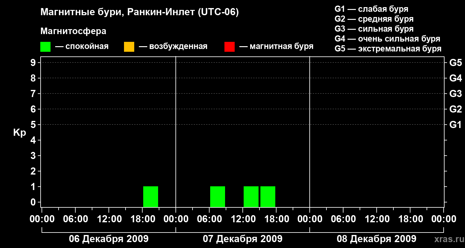 Магнитные бури в Ранкин-Инлете в декабре 2009 года