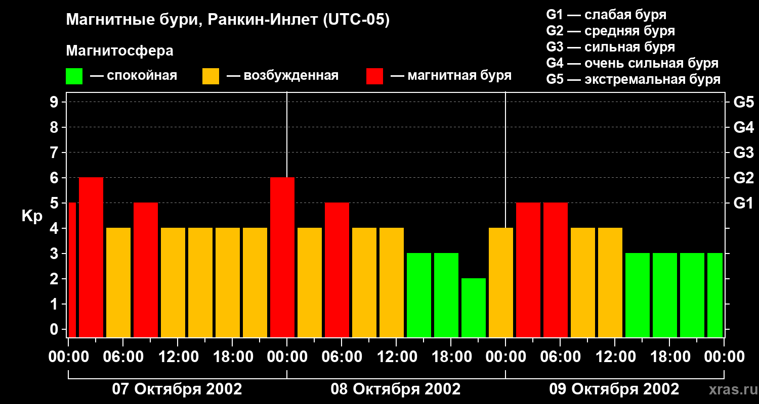 Магнитные бури в Ранкин-Инлете 9 октября 2002 года