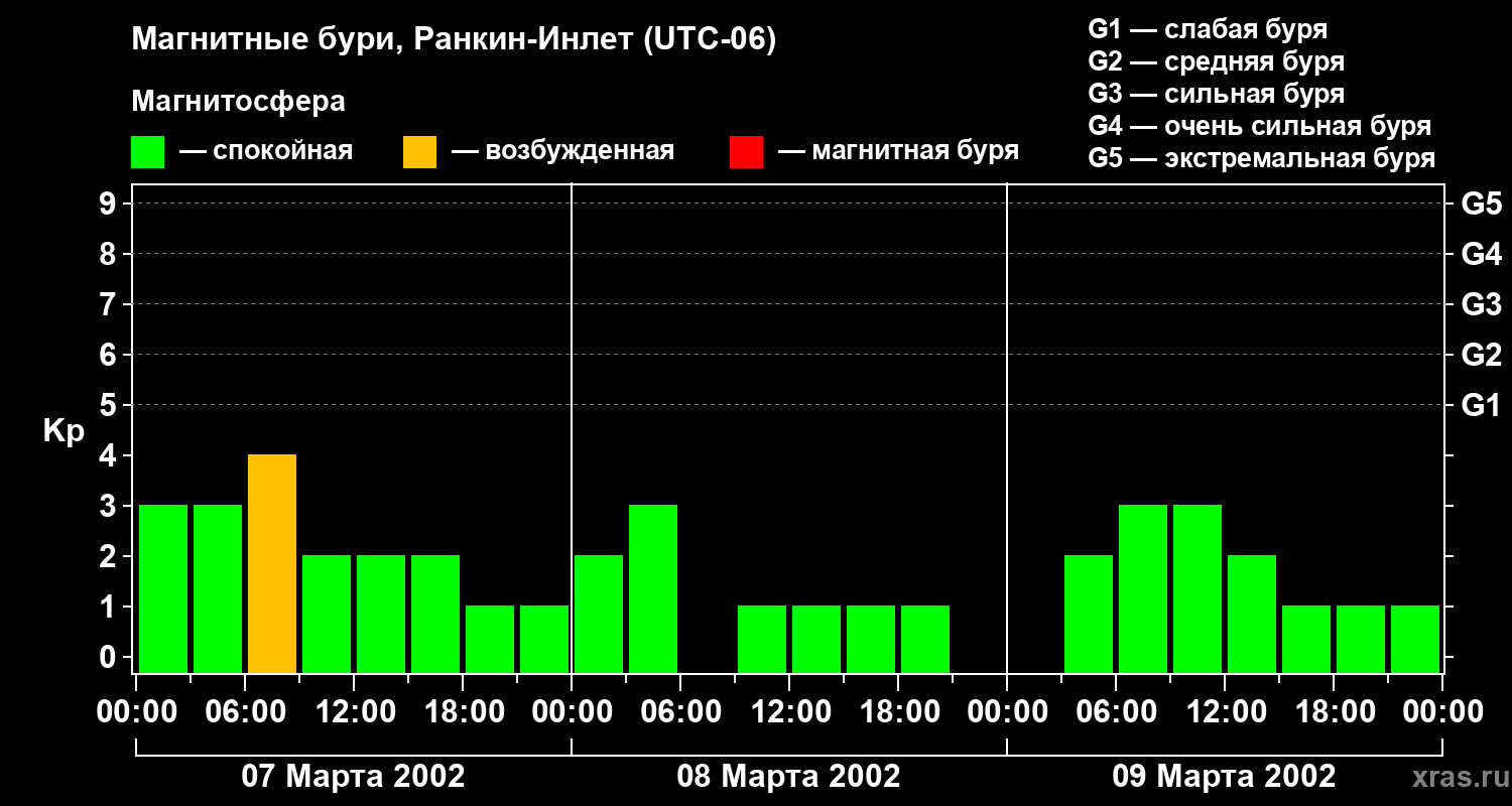 Магнитные бури в Ранкин-Инлете 9 марта 2002 года