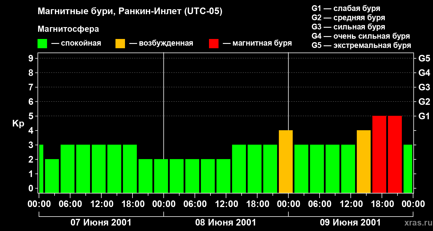 Магнитные бури в Ранкин-Инлете 9 июня 2001 года