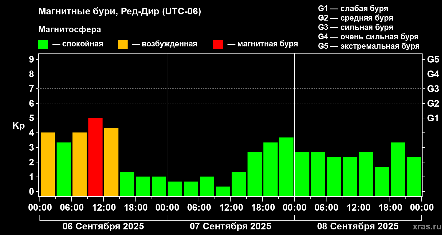 Магнитные бури в Ред-Дире — 8 сентября 2025 года