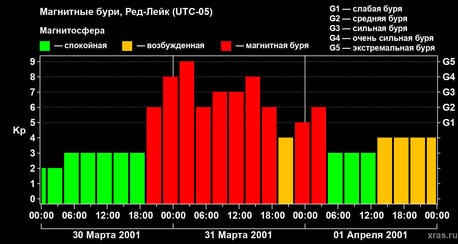 Магнитные бури в Ред-Лейке 1 апреля 2001 года