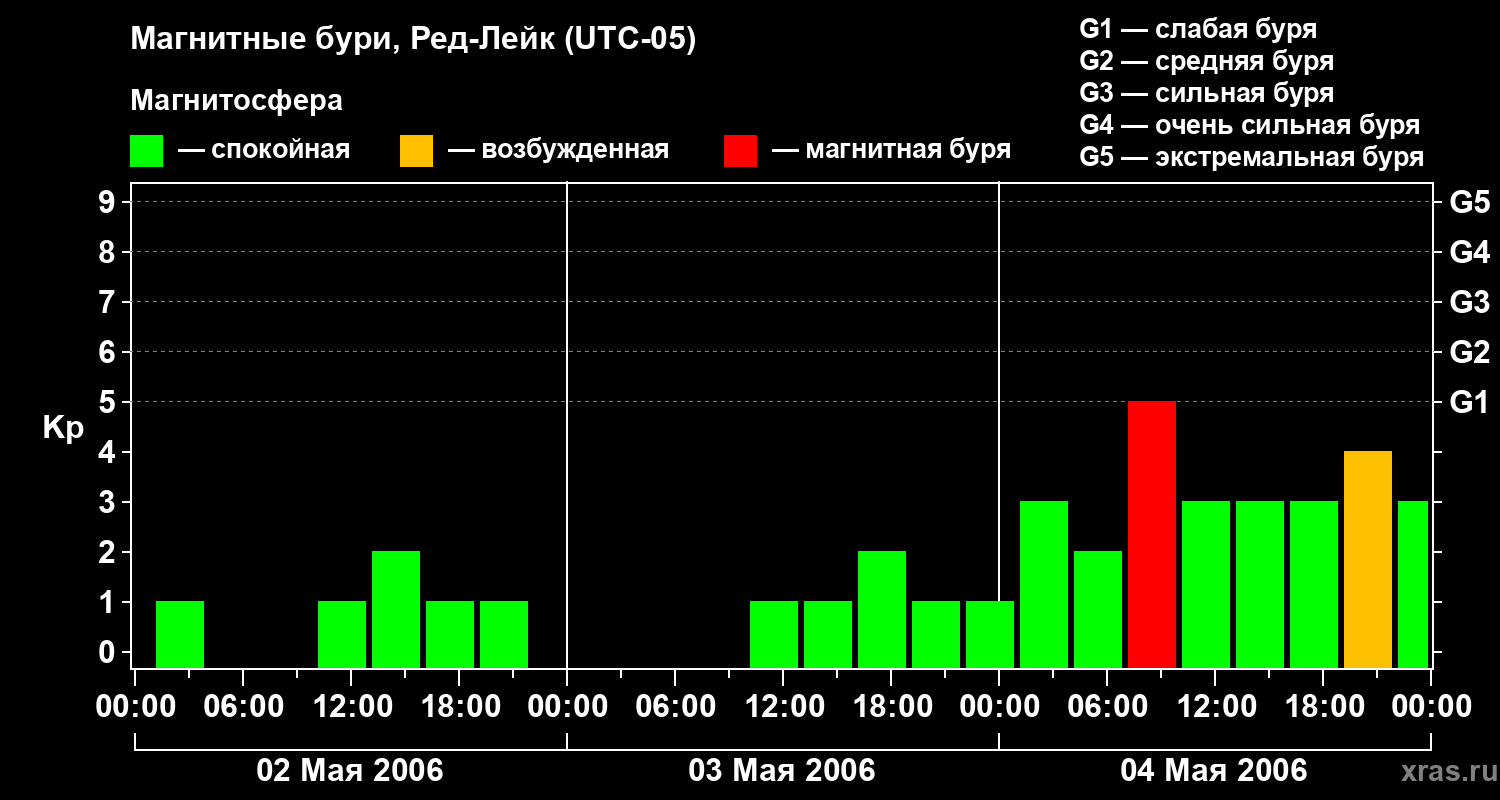 Магнитные бури в Ред-Лейке 4 мая 2006 года