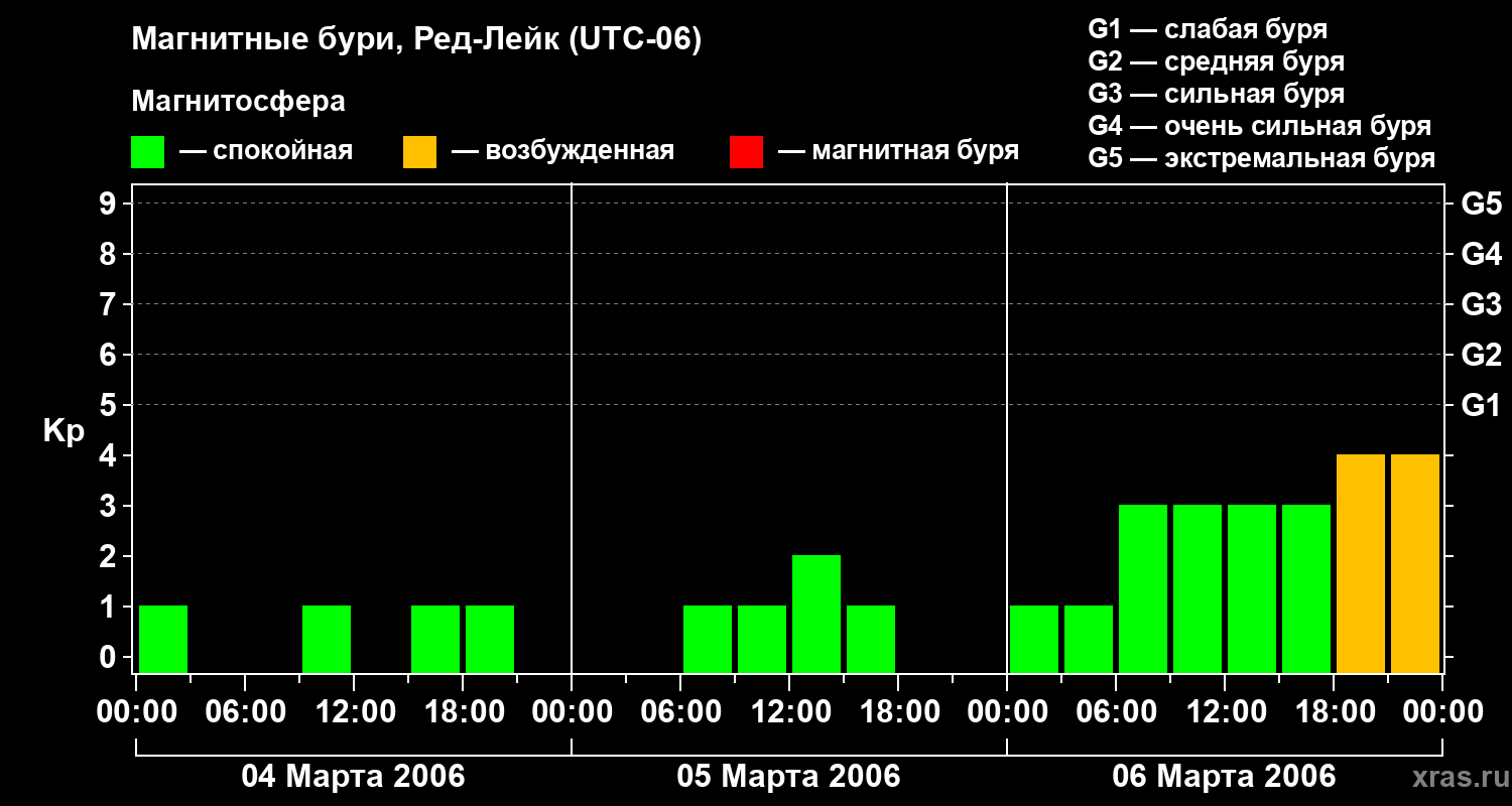 Магнитные бури в Ред-Лейке 6 марта 2006 года