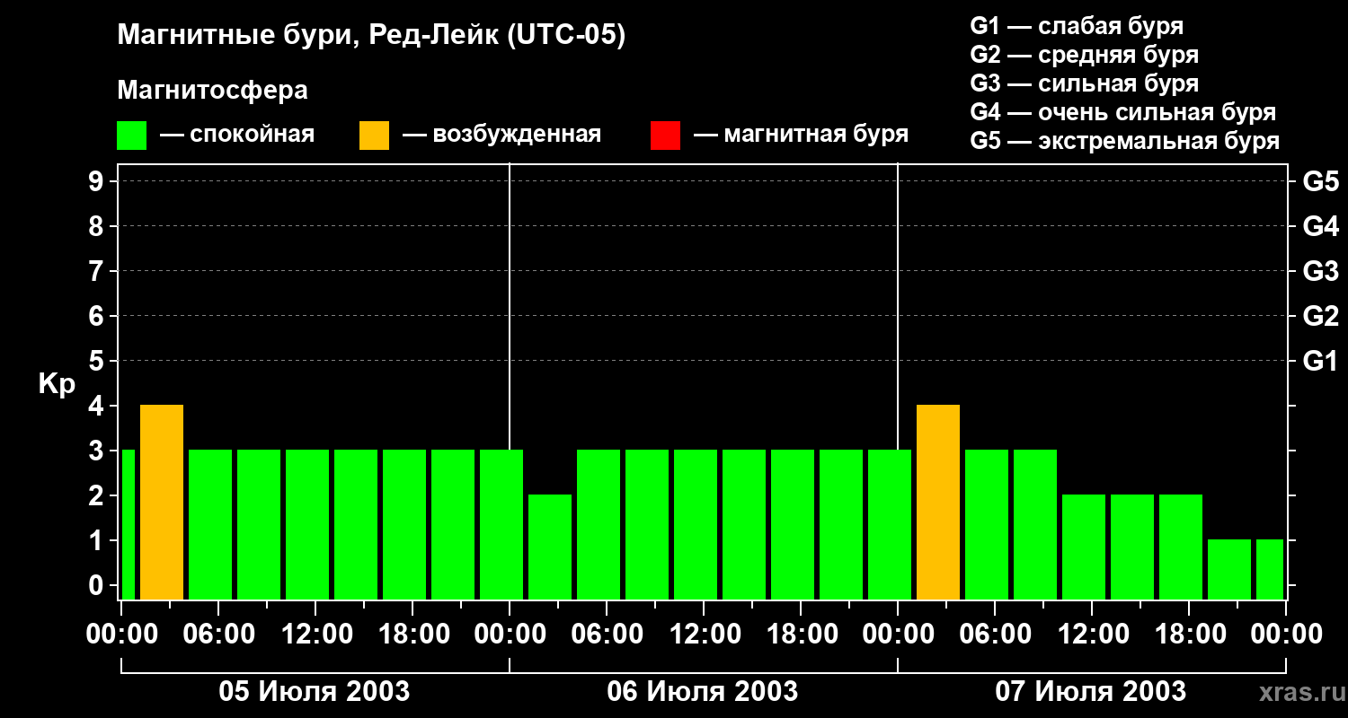 Магнитные бури в Ред-Лейке в июле 2003 года