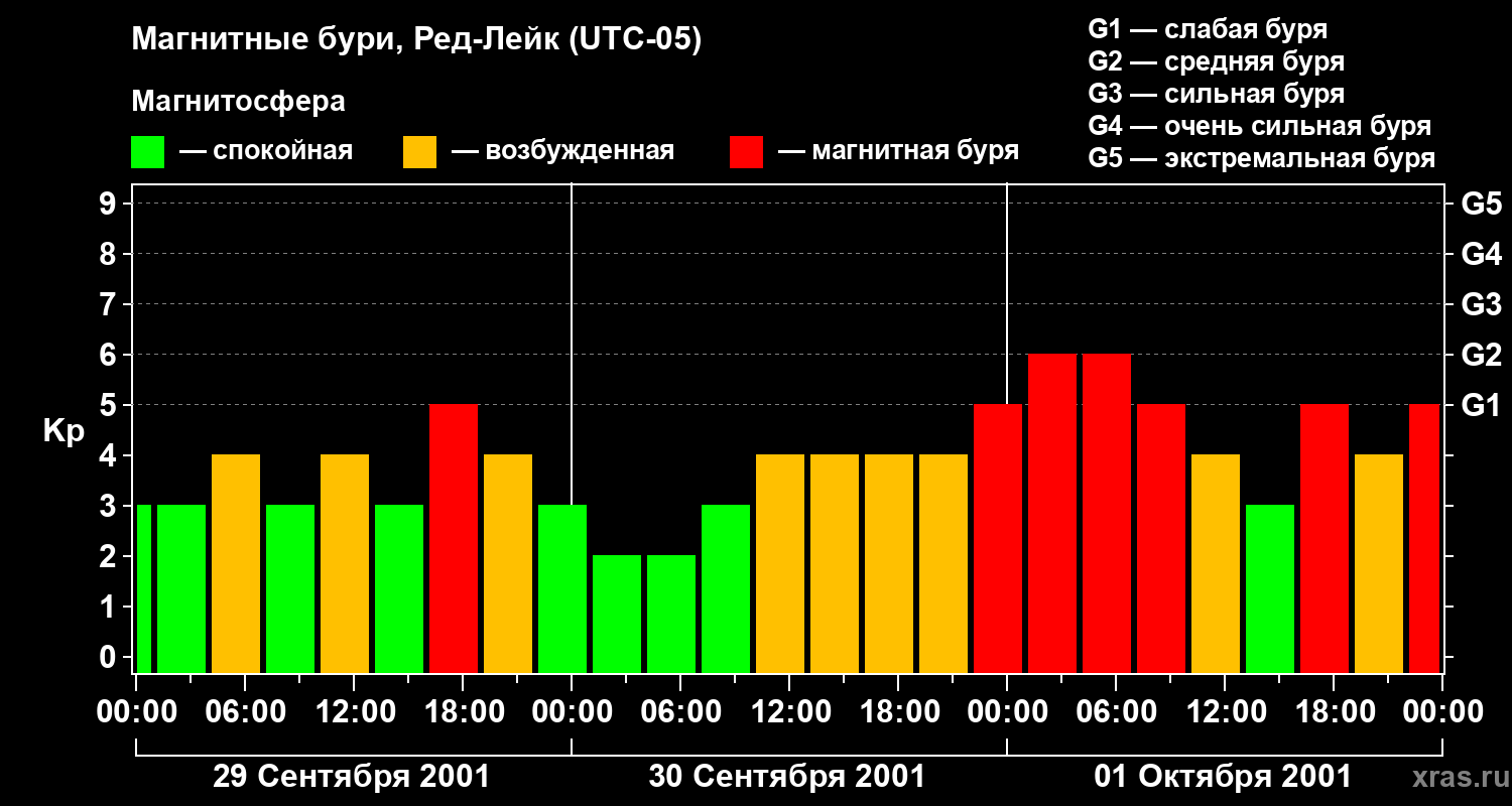 Магнитные бури в Ред-Лейке 1 октября 2001 года