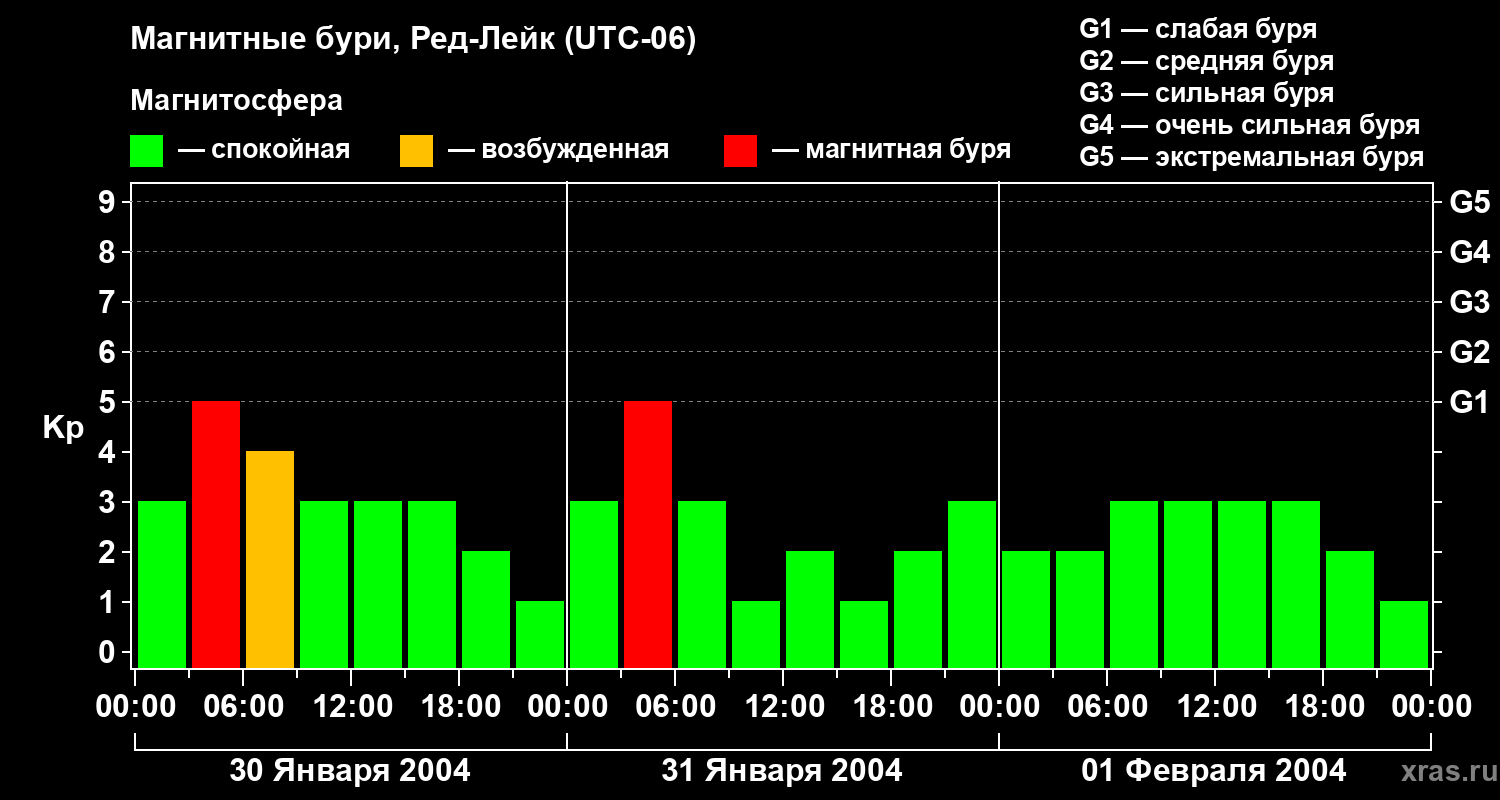 Магнитные бури в Ред-Лейке 1 февраля 2004 года