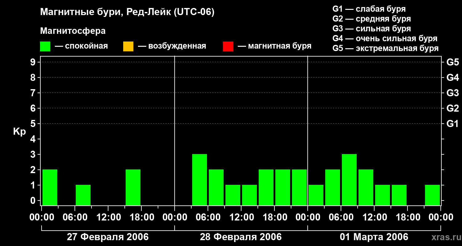 Магнитные бури в Ред-Лейке 1 марта 2006 года