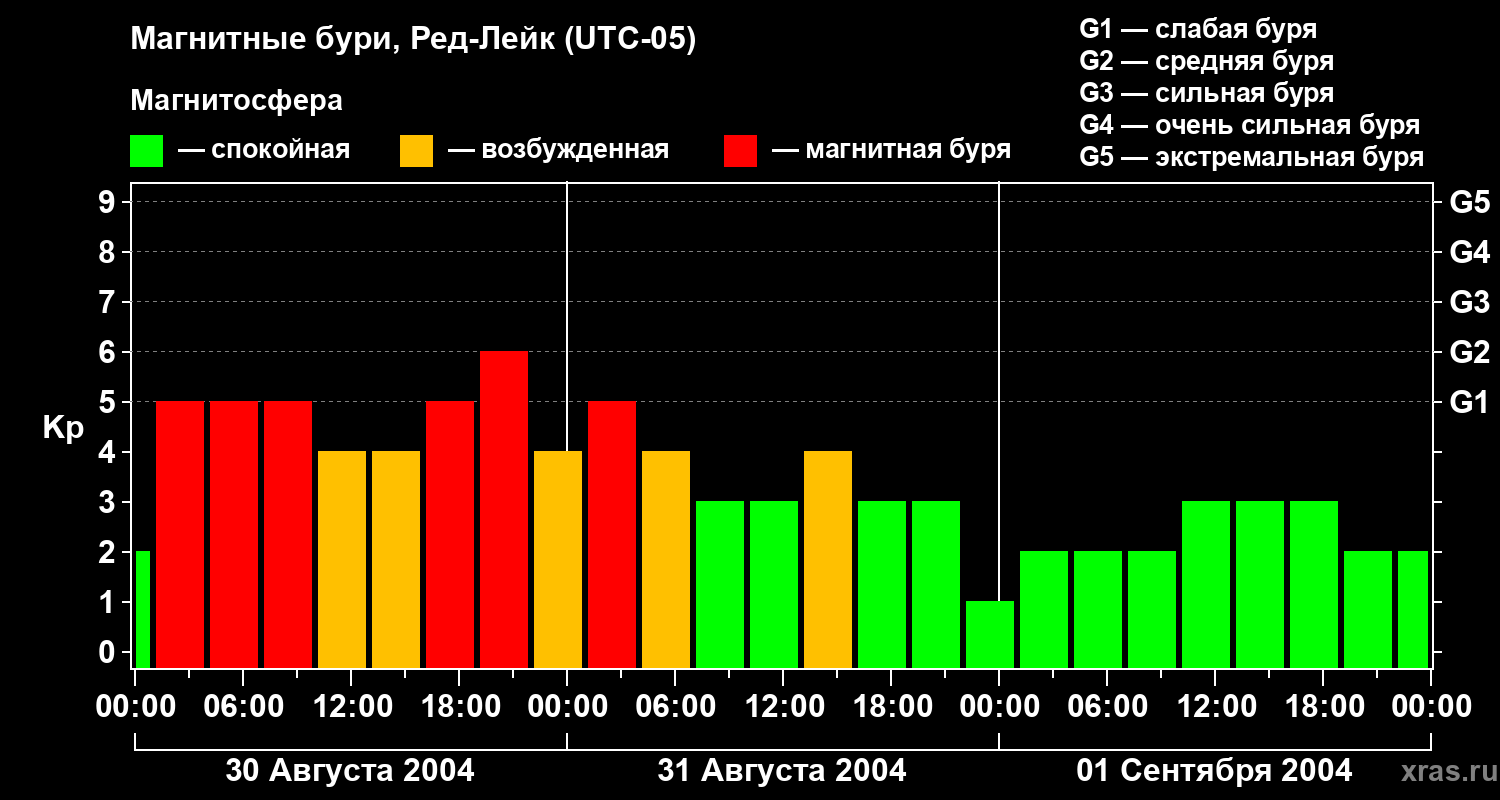 Магнитные бури в Ред-Лейке 1 сентября 2004 года