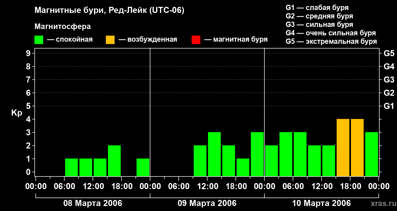 Магнитные бури в Ред-Лейке 10 марта 2006 года