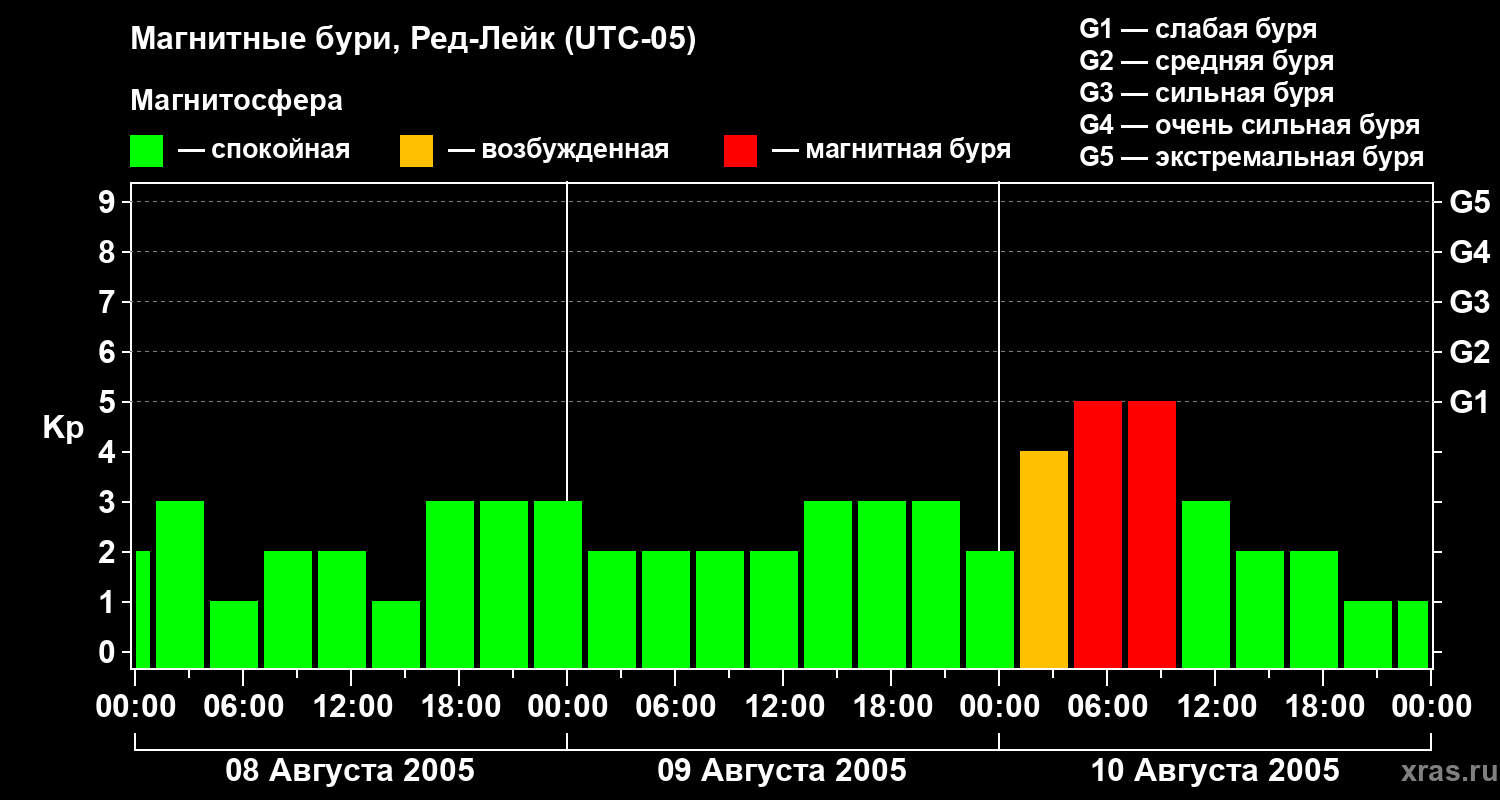 Магнитные бури в Ред-Лейке в августе 2005 года