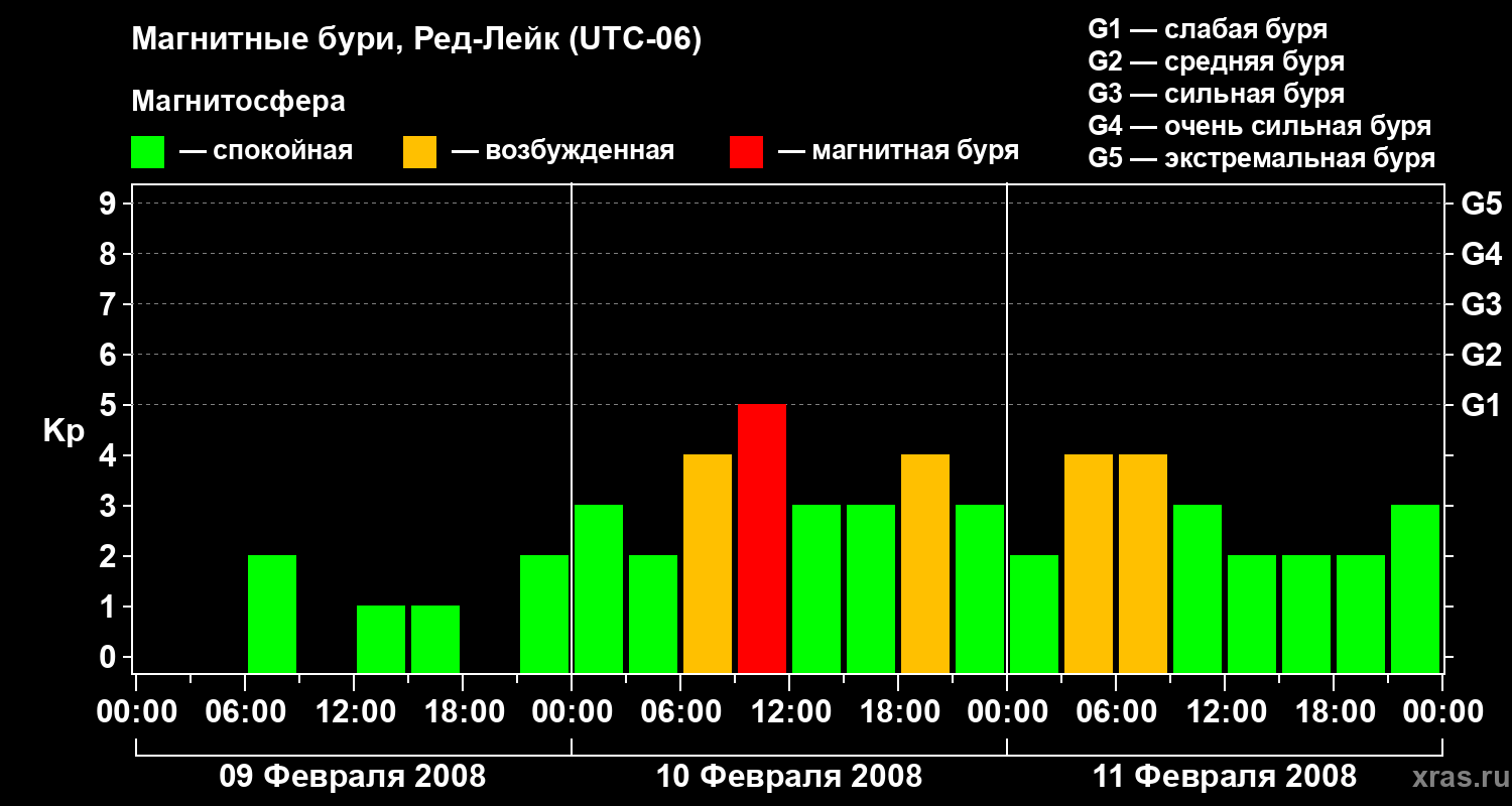 Магнитные бури в Ред-Лейке в феврале 2008 года