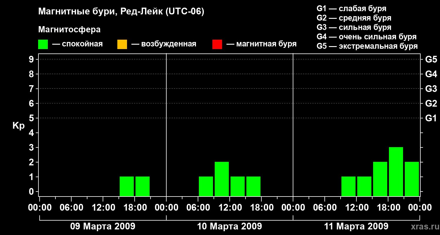 Магнитные бури в Ред-Лейке 11 марта 2009 года