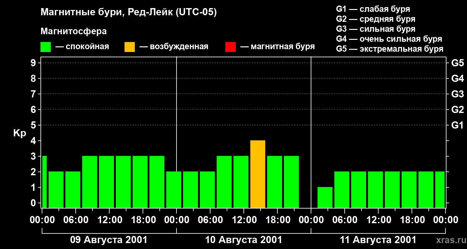 Магнитные бури в Ред-Лейке в августе 2001 года