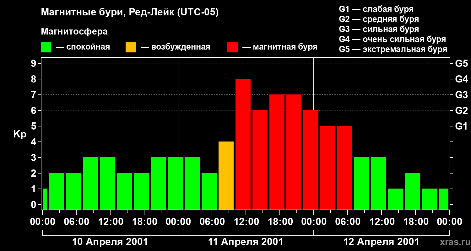 Магнитные бури в Ред-Лейке в апреле 2001 года
