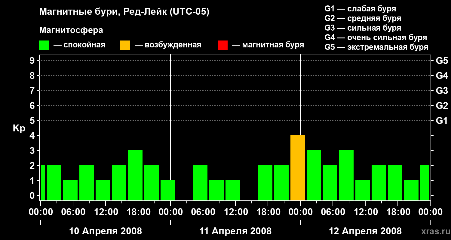 Магнитные бури в Ред-Лейке 12 апреля 2008 года
