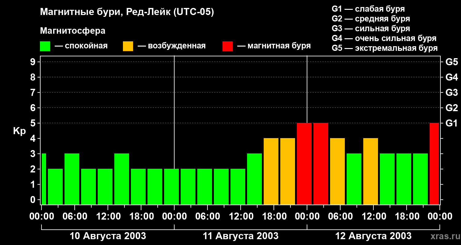 Магнитные бури в Ред-Лейке в августе 2003 года