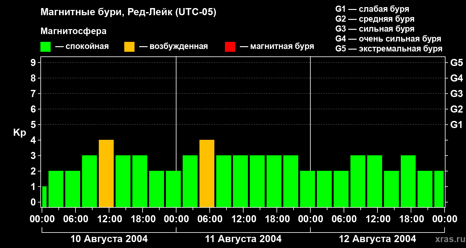 Магнитные бури в Ред-Лейке в августе 2004 года