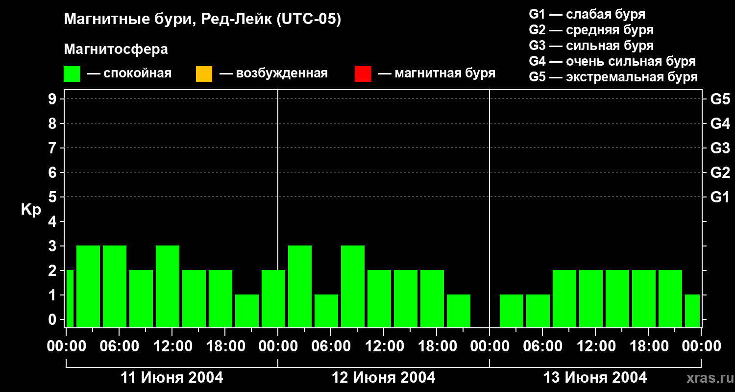 Магнитные бури в Ред-Лейке 13 июня 2004 года