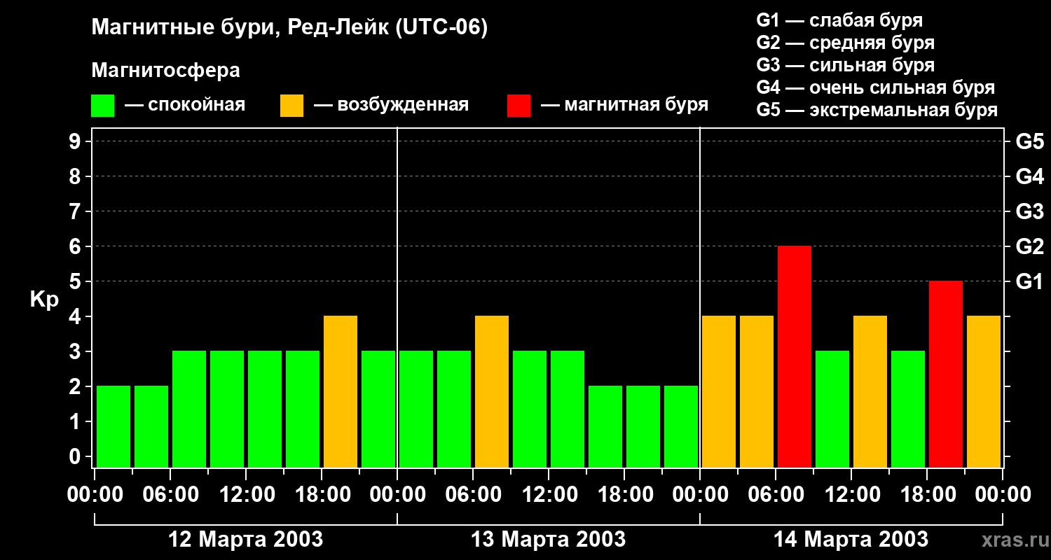 Магнитные бури в Ред-Лейке — 14 марта 2003 года