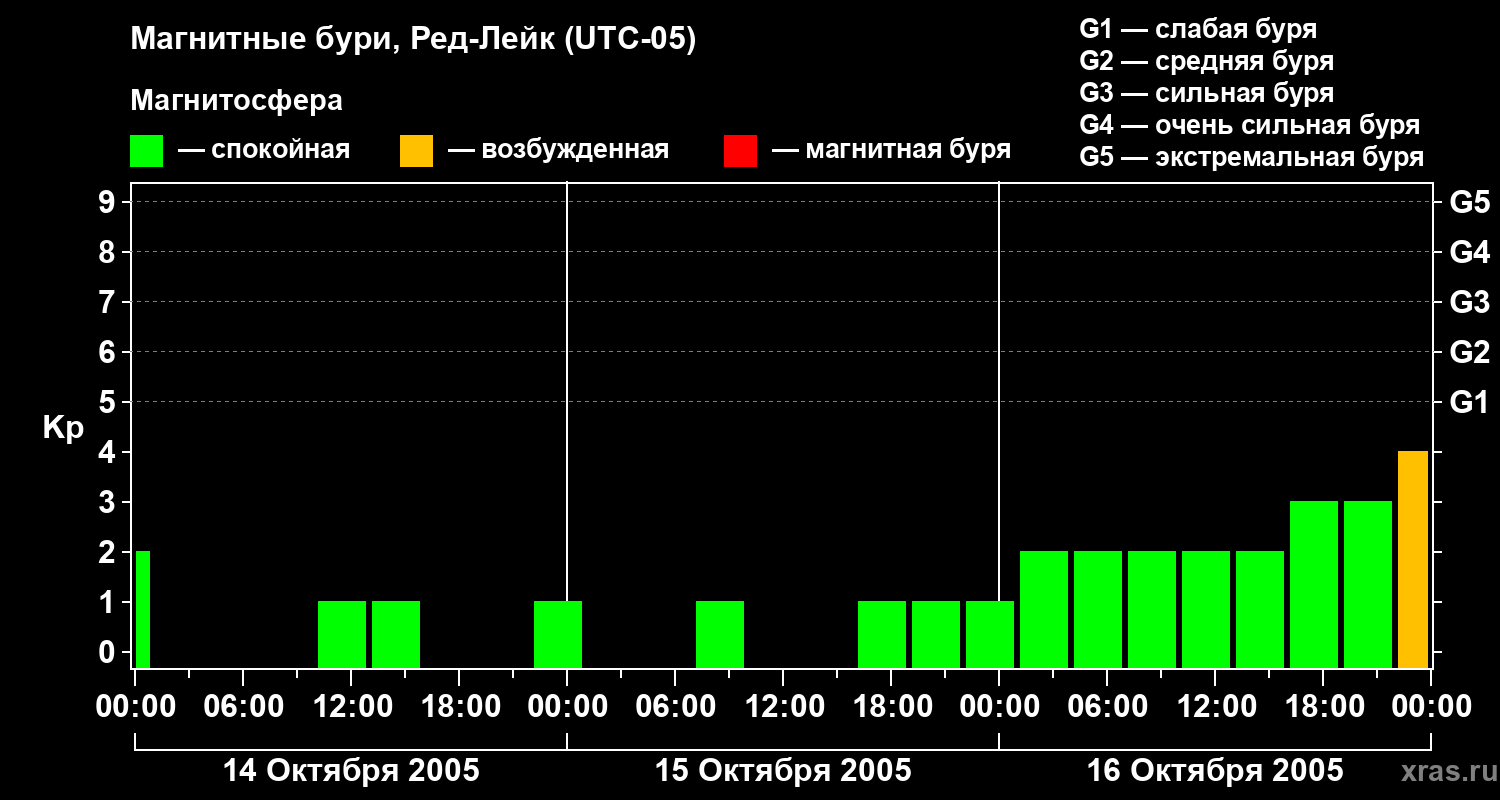 Магнитные бури в Ред-Лейке 16 октября 2005 года