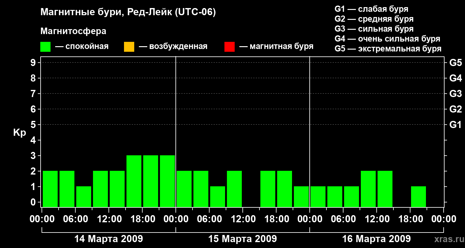 Магнитные бури в Ред-Лейке 16 марта 2009 года