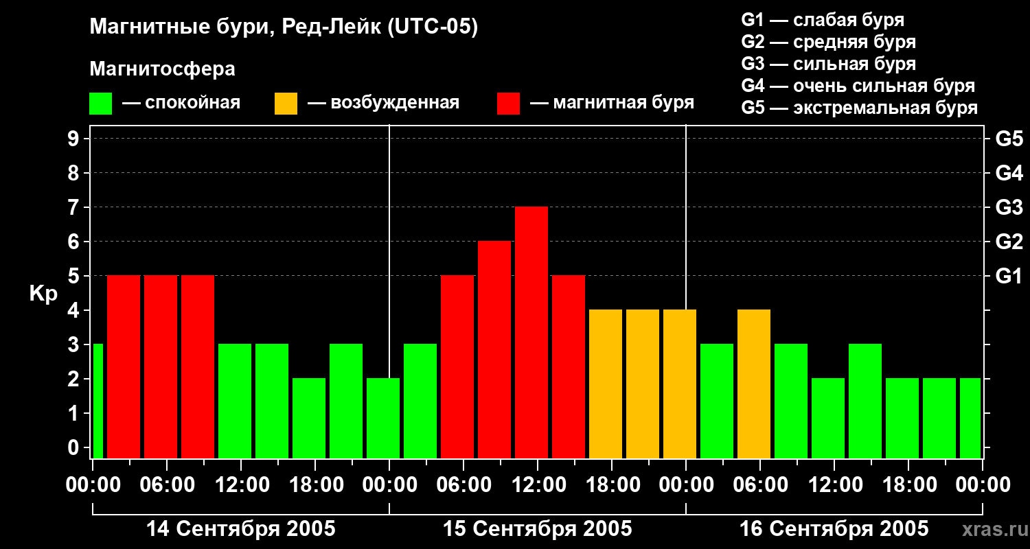 Магнитные бури в Ред-Лейке 16 сентября 2005 года