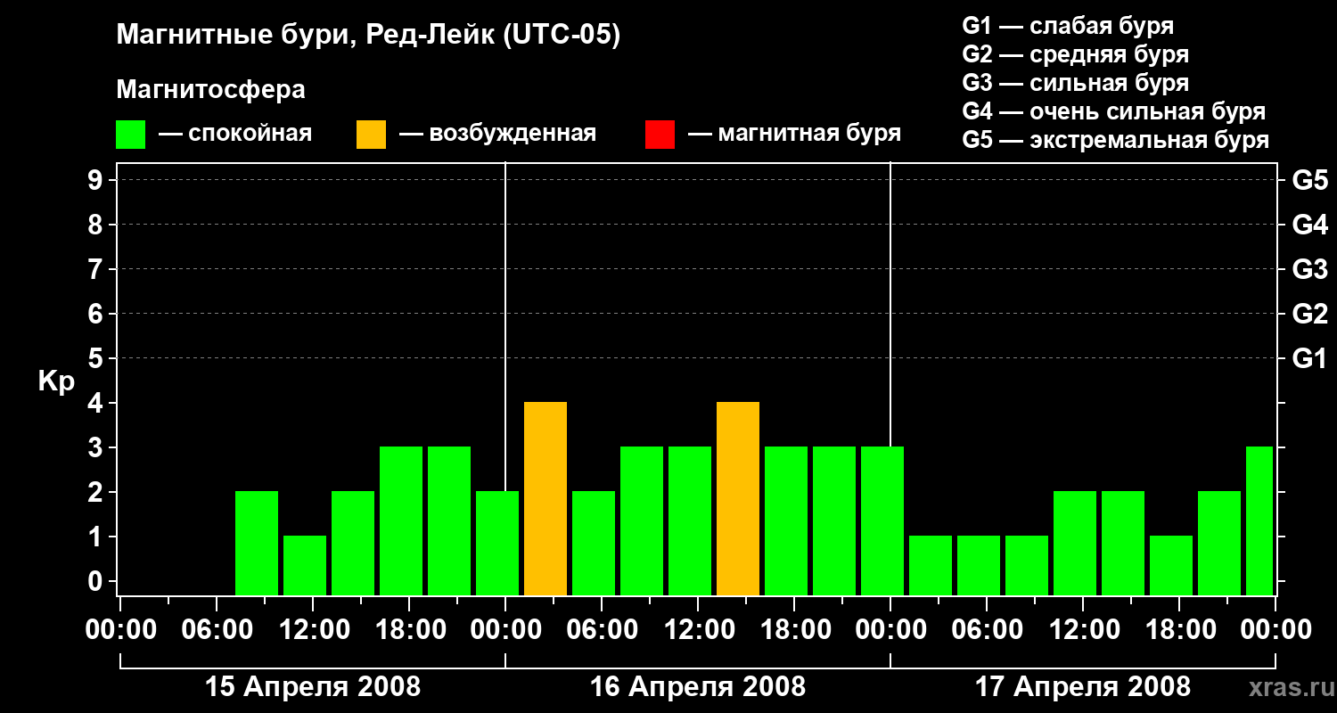 Магнитные бури в Ред-Лейке 17 апреля 2008 года