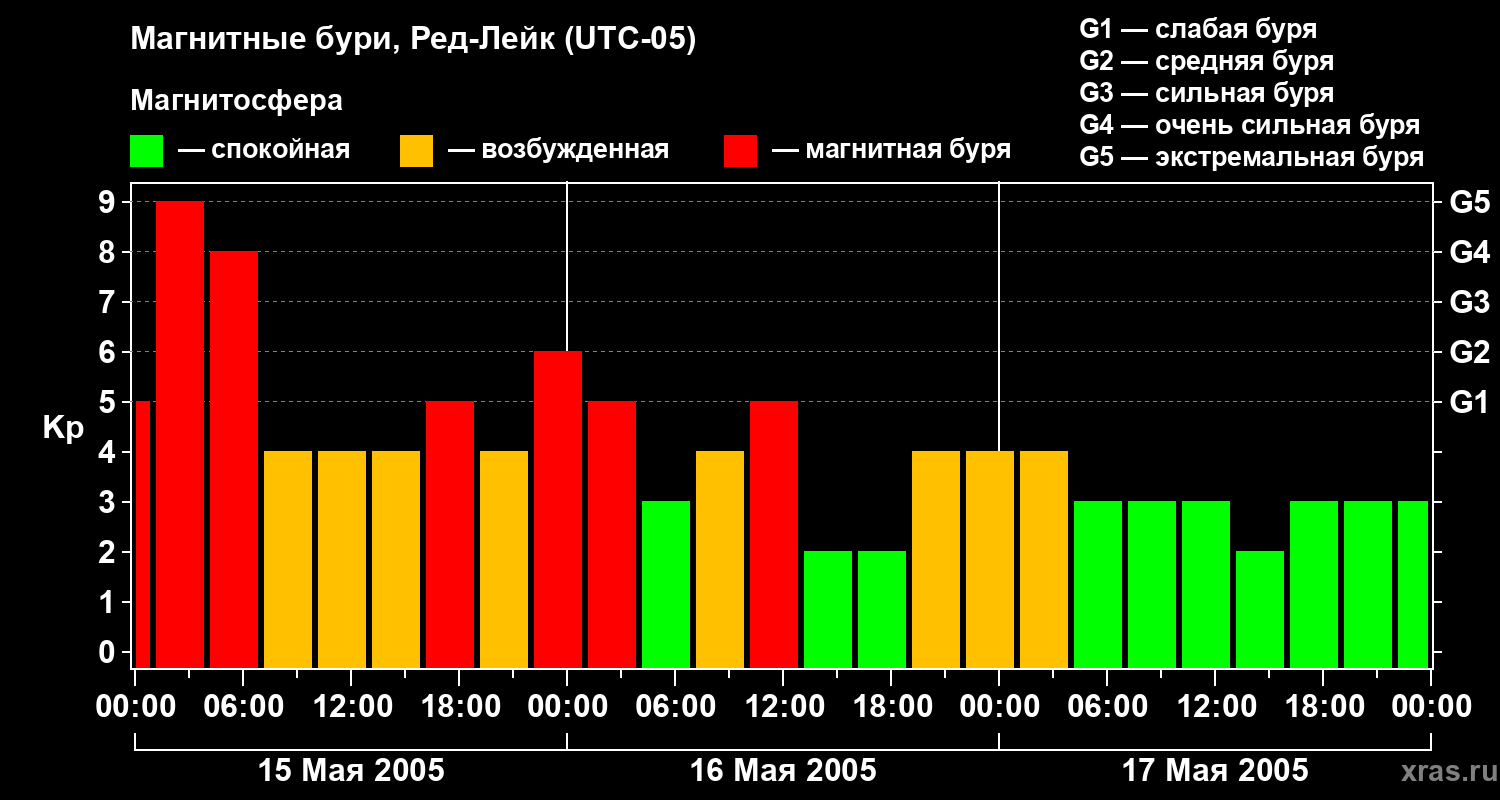 Магнитные бури в Ред-Лейке в мае 2005 года