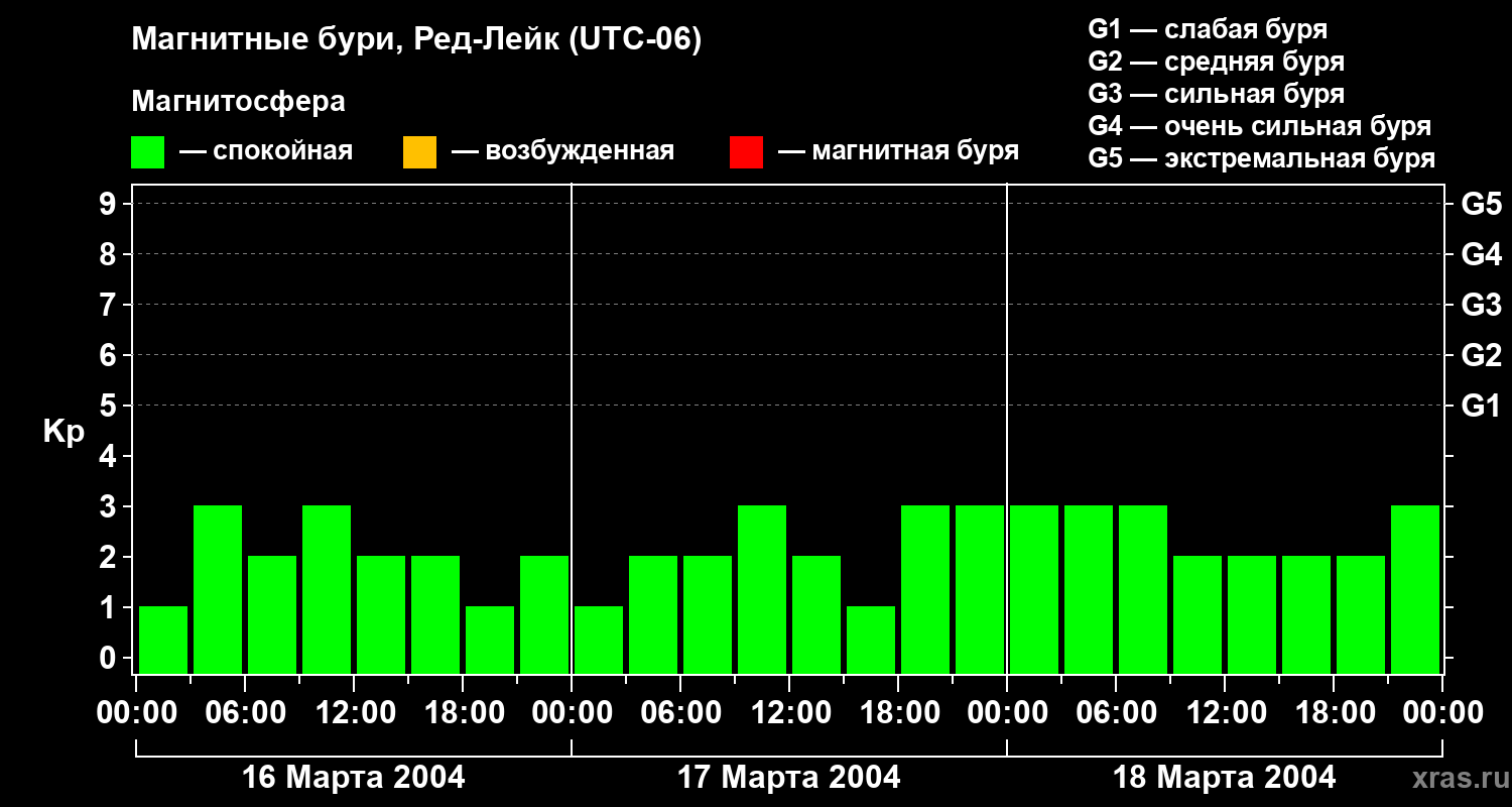 Магнитные бури в Ред-Лейке 18 марта 2004 года