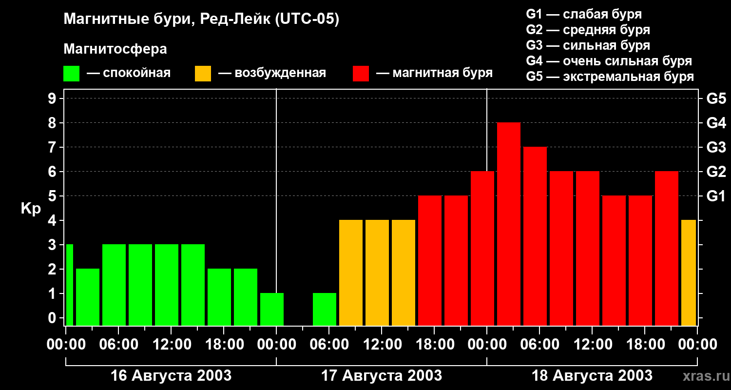 Магнитные бури в Ред-Лейке в августе 2003 года