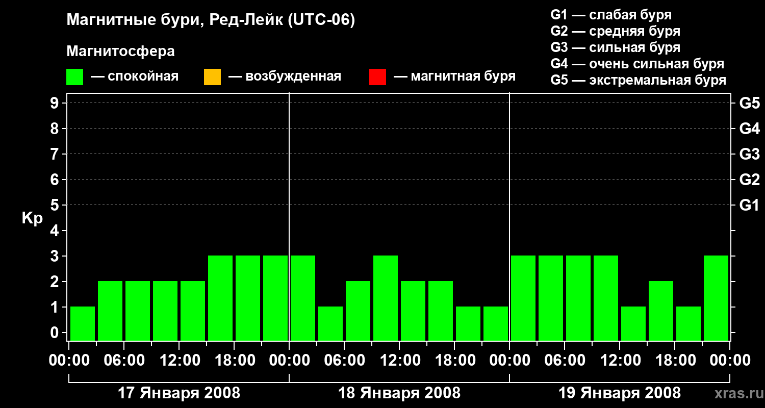 Магнитные бури в Ред-Лейке 19 января 2008 года