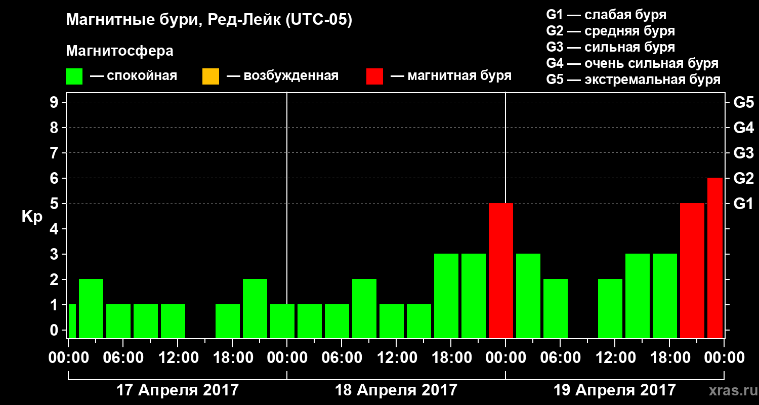 Магнитные бури в Ред-Лейке 19 апреля 2017 года