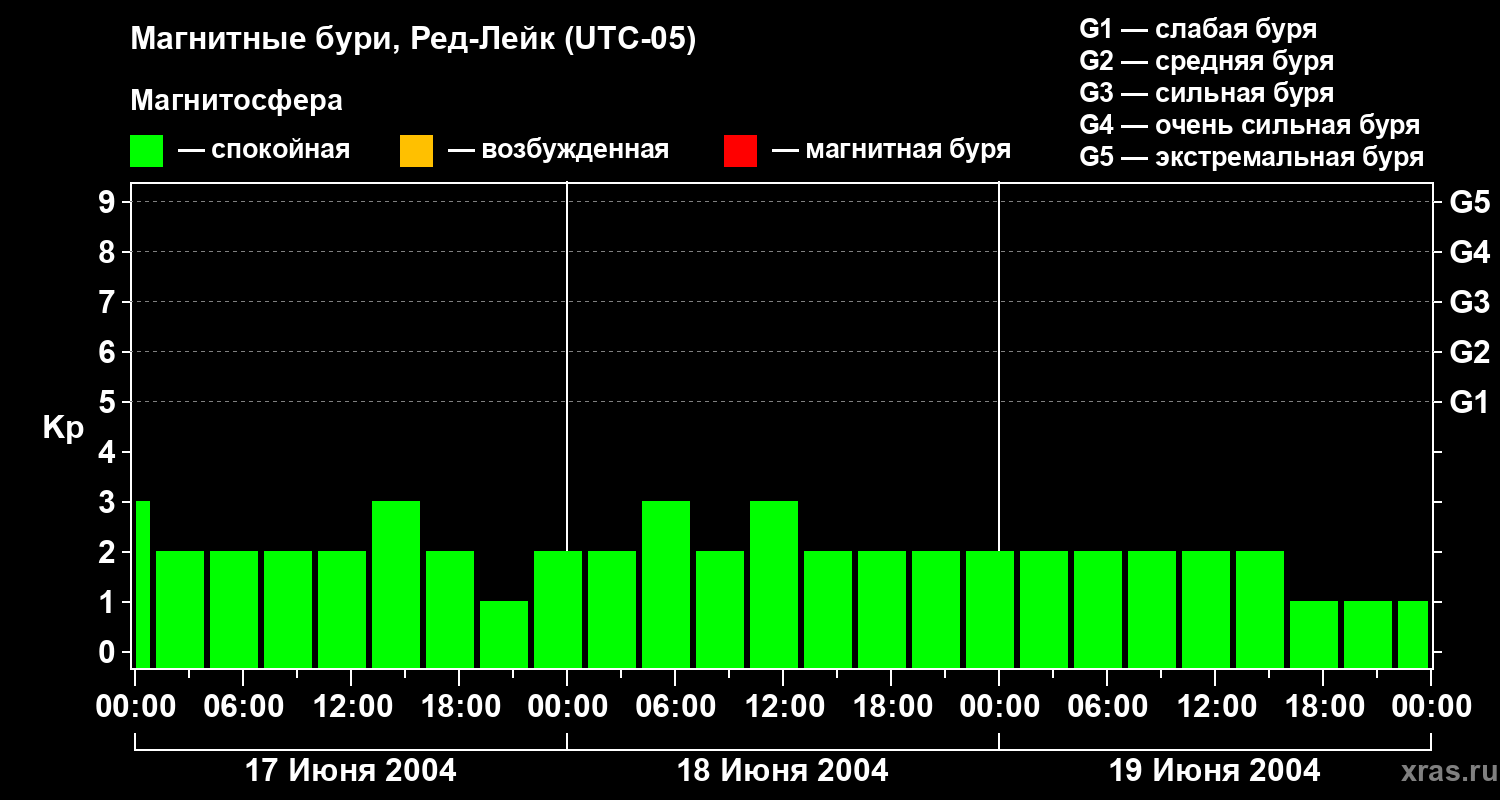 Магнитные бури в Ред-Лейке в июне 2004 года