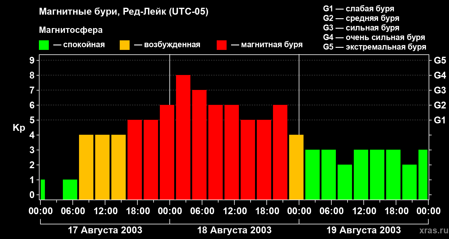 Магнитные бури в Ред-Лейке в августе 2003 года