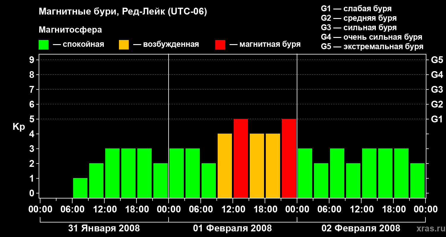 Магнитные бури в Ред-Лейке 2 февраля 2008 года