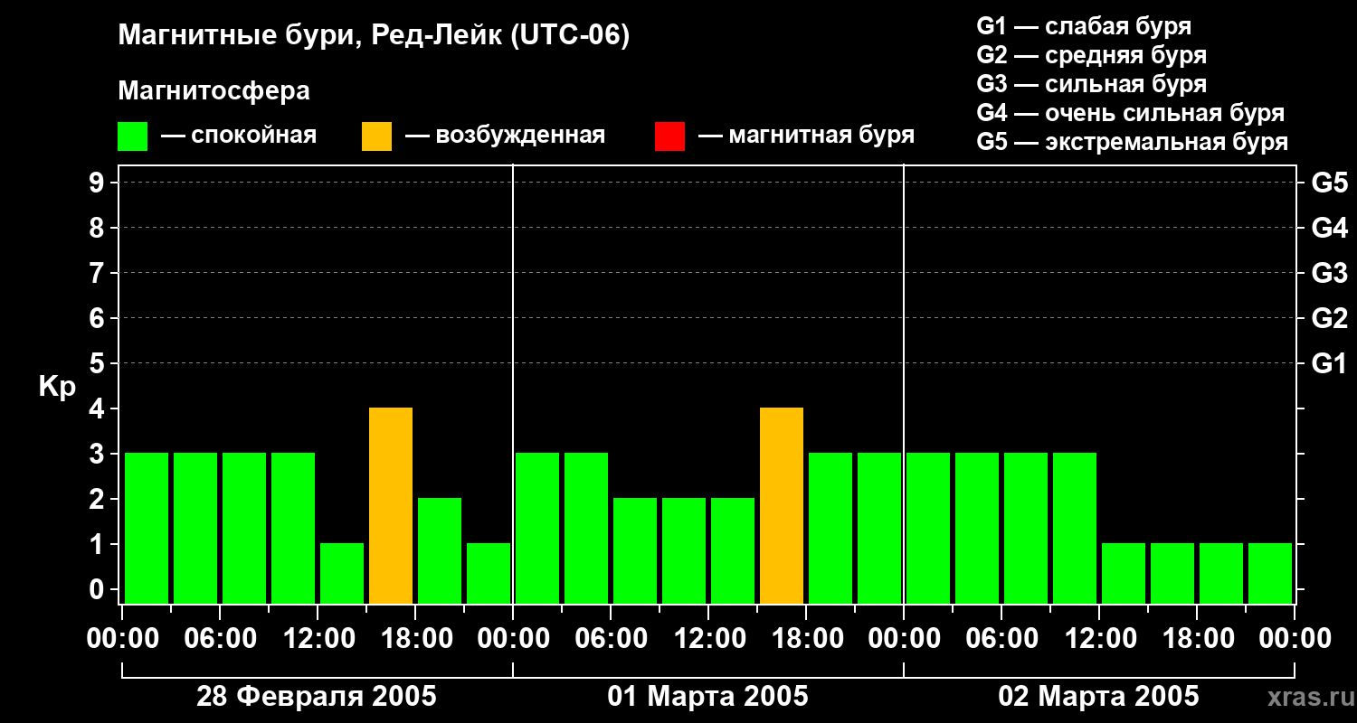 Магнитные бури в Ред-Лейке 2 марта 2005 года