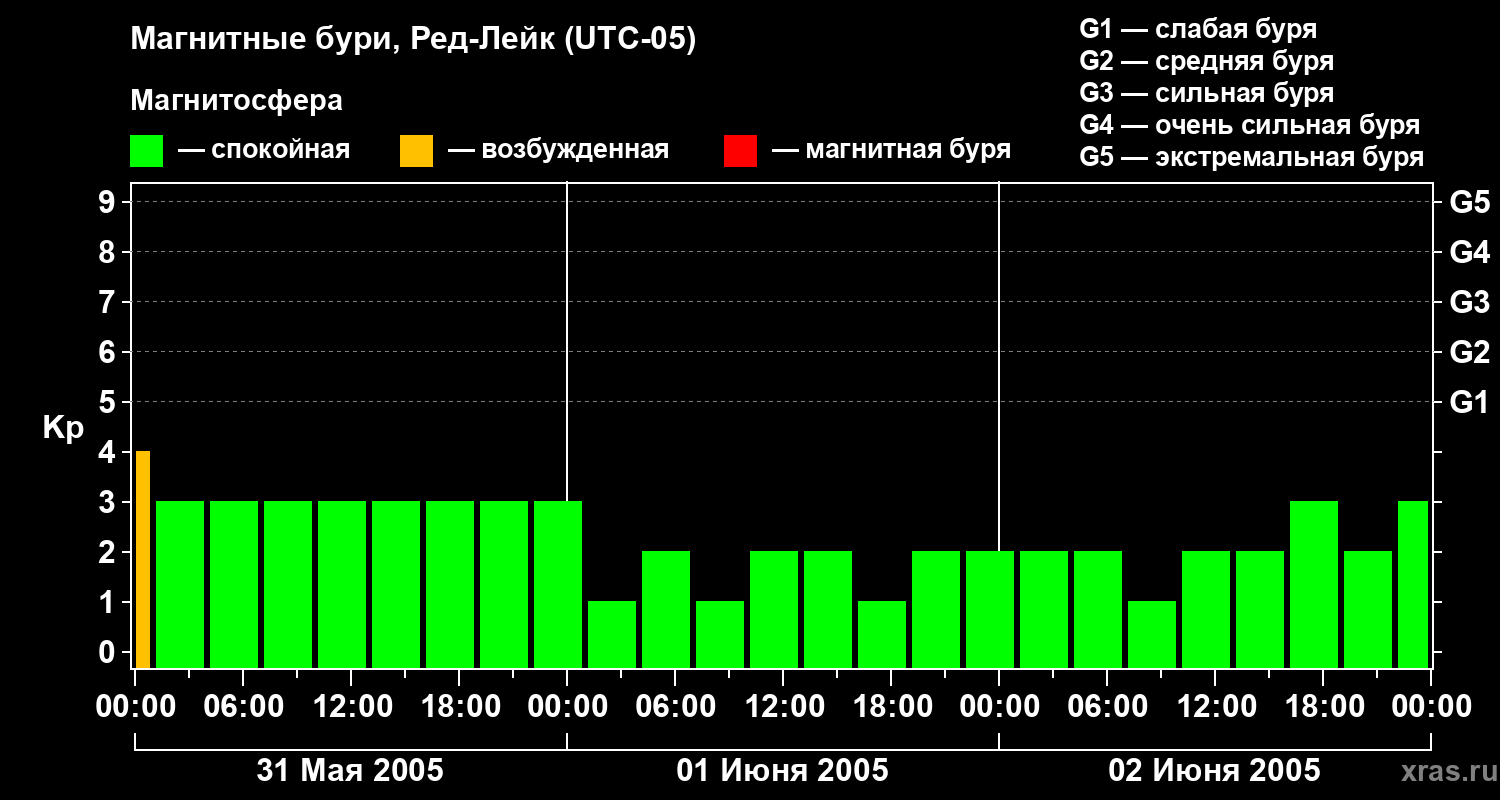 Магнитные бури в Ред-Лейке 2 июня 2005 года