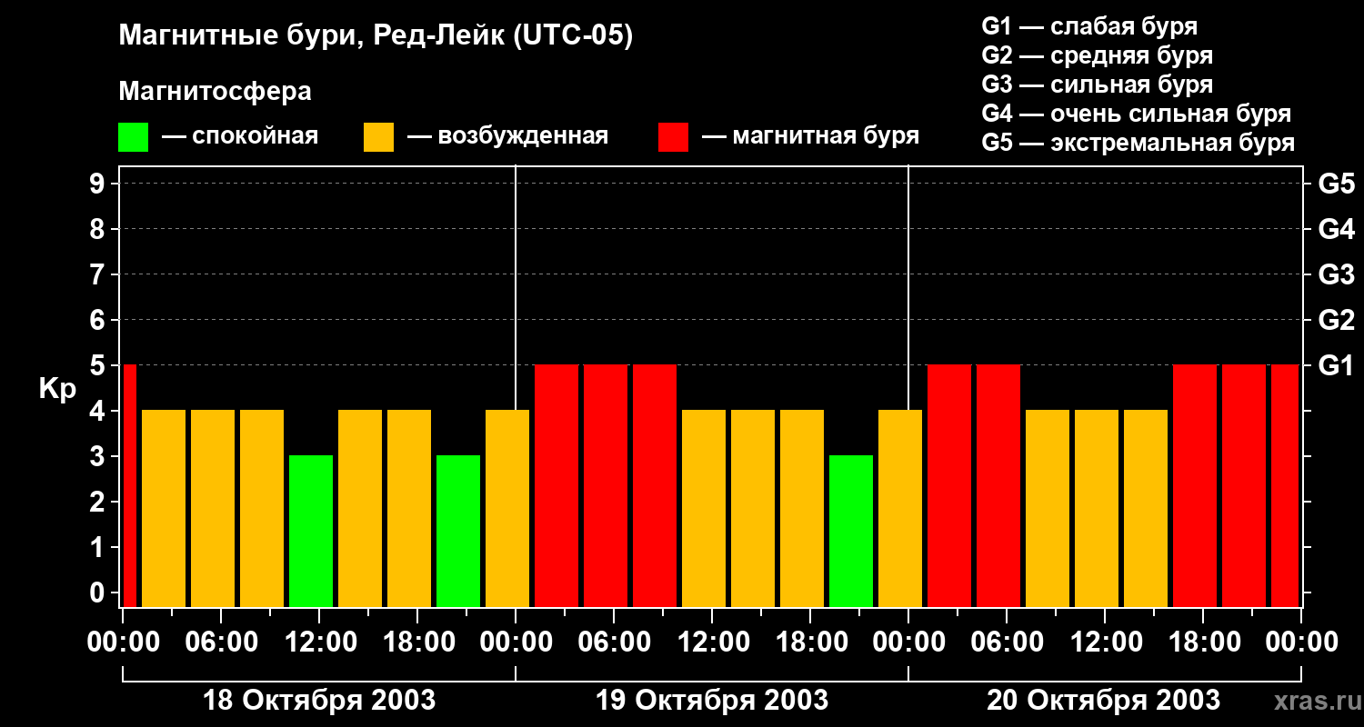 Магнитные бури в Ред-Лейке 20 октября 2003 года